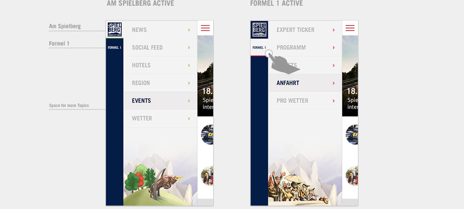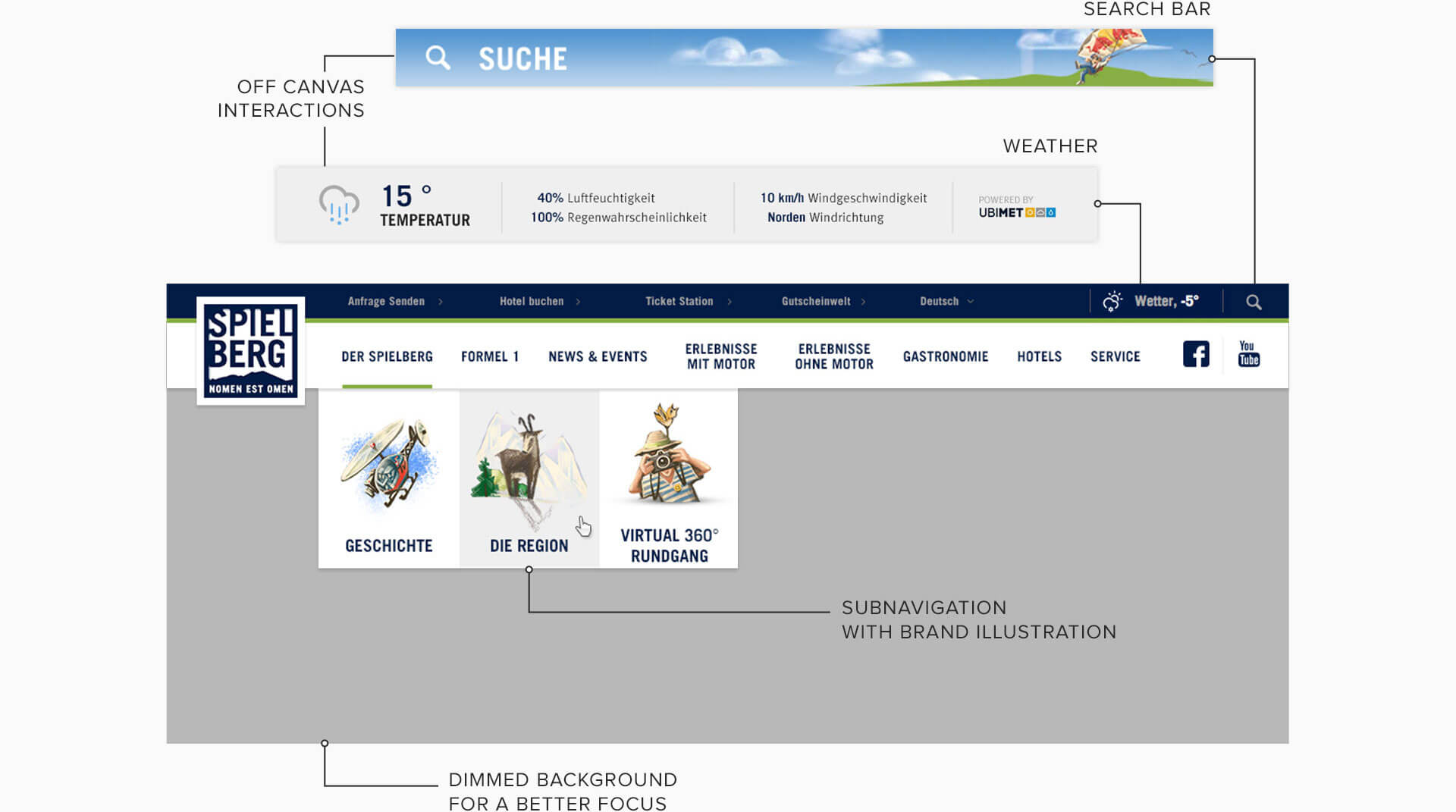 To ensure a consistent user experience a visual approach was taken for the sub navigation of "Projekt Spielberg".